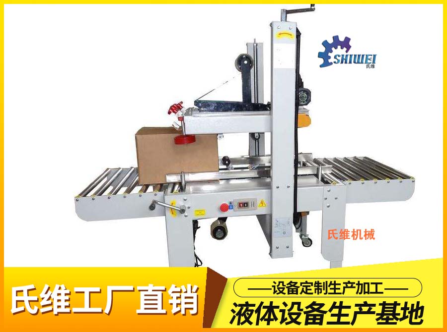矿泉水装箱机 小瓶果汁饮料全自动纸箱包装设备的封箱机的作用,主要用于已经装箱完毕后的纸箱包装,目前纸箱的包装封箱需要塑料胶带进行封箱,否者这个纸箱里面的瓶装饮料容易跑出来。封好箱子以后产品可以在路上顺利的输送,封箱的耗材为一次性胶带,每次换起来加方便。悬挂式的胶带封箱,所以起来方便。